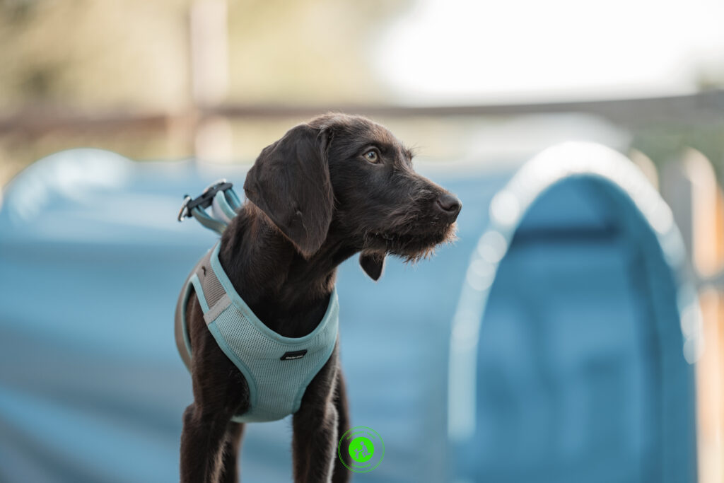 Es geht darum, den Hunden beizubringen, ihren Körper in gutem Gleichgewicht zu halten und auf verschiedenen Untergründen auszubalancieren.